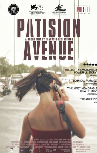 PATISION AVENUE (13' | 2018) is an award-winning short film by Greek filmmaker Thanasis Neofotistos. Shot in a single long take, it premiered at the 75th Venice International Film Festival and went on to win Best Film awards at Clermont-Ferrand, São Paulo, and Busan, while screening at over 100 festivals worldwide.